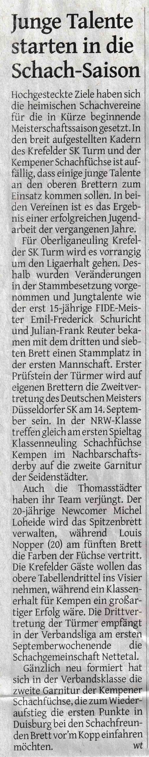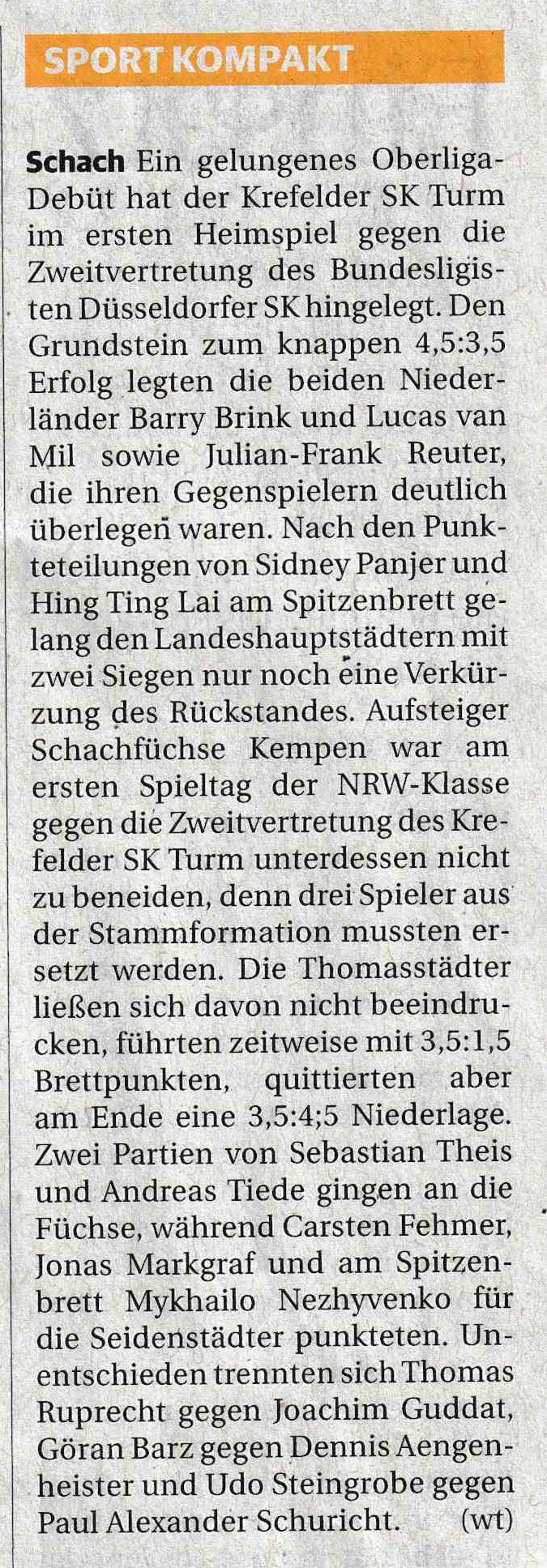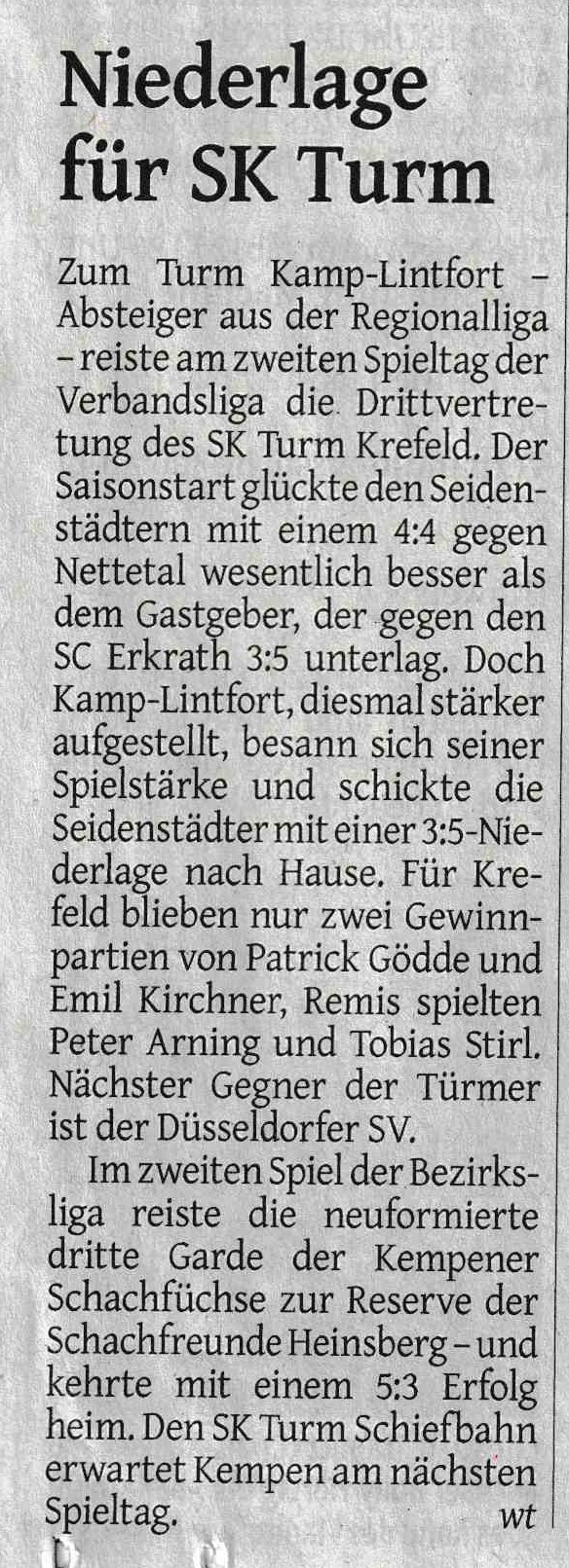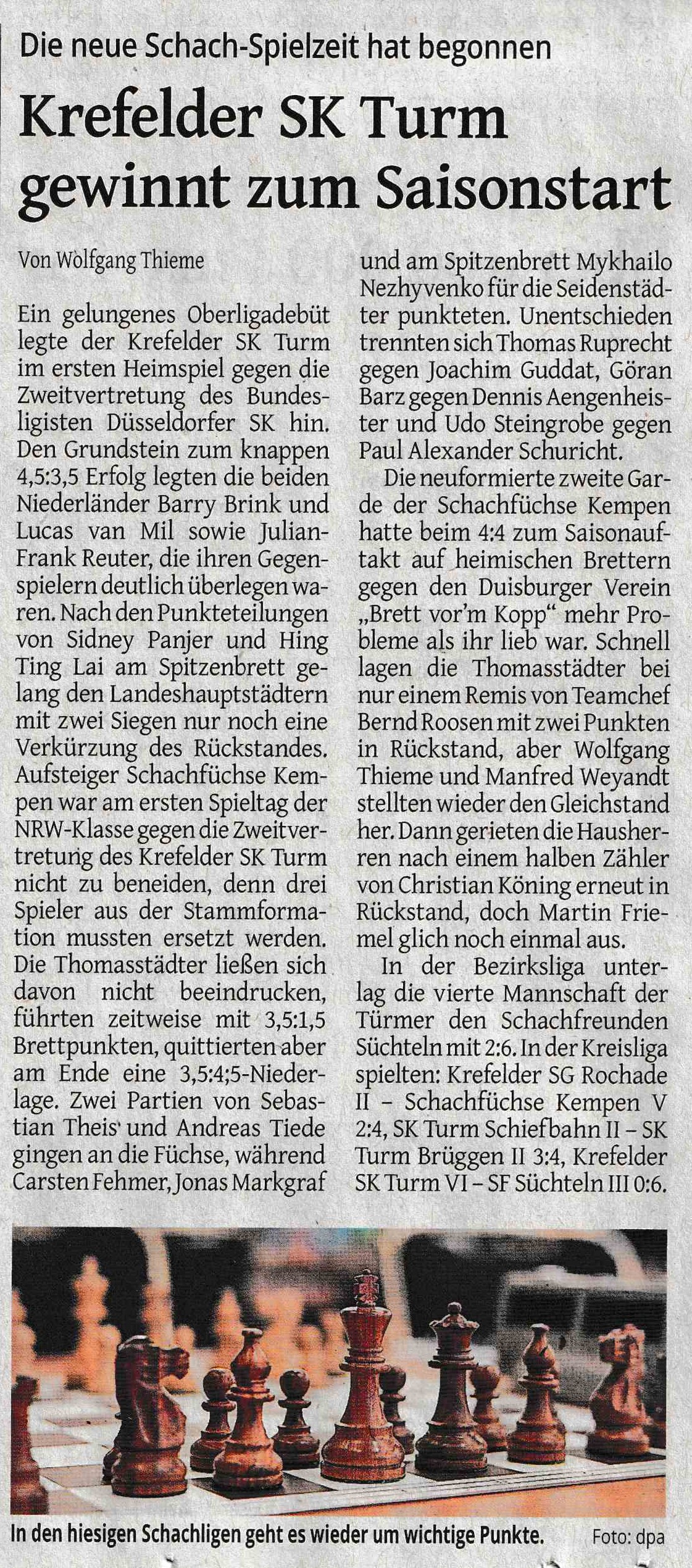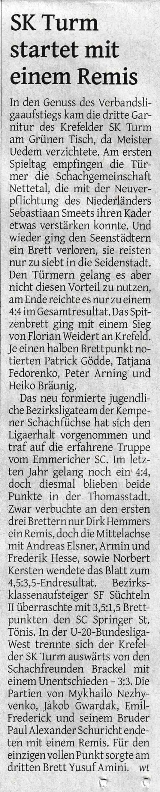 11.09.2024 | Krefelder Schachklub mit Remis