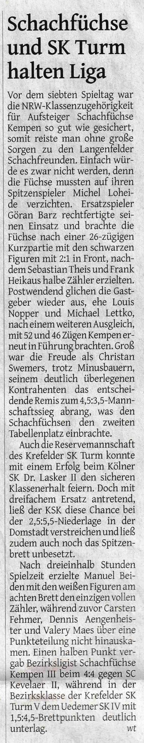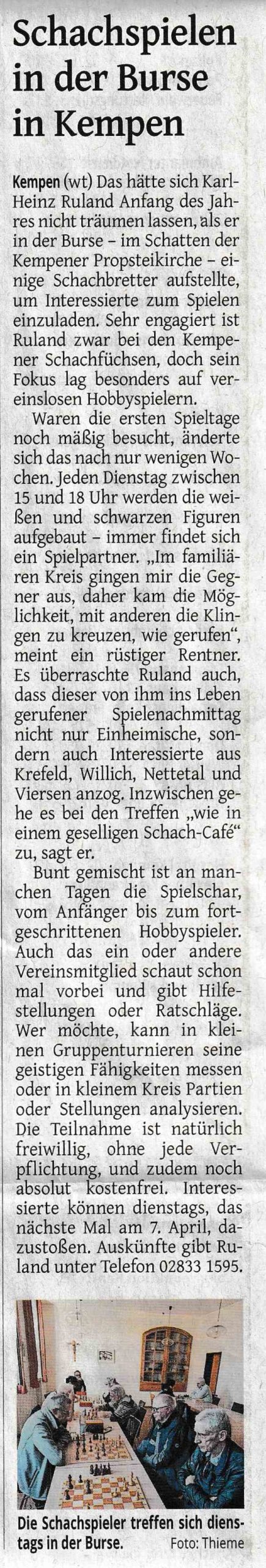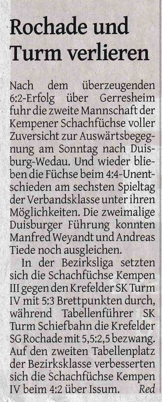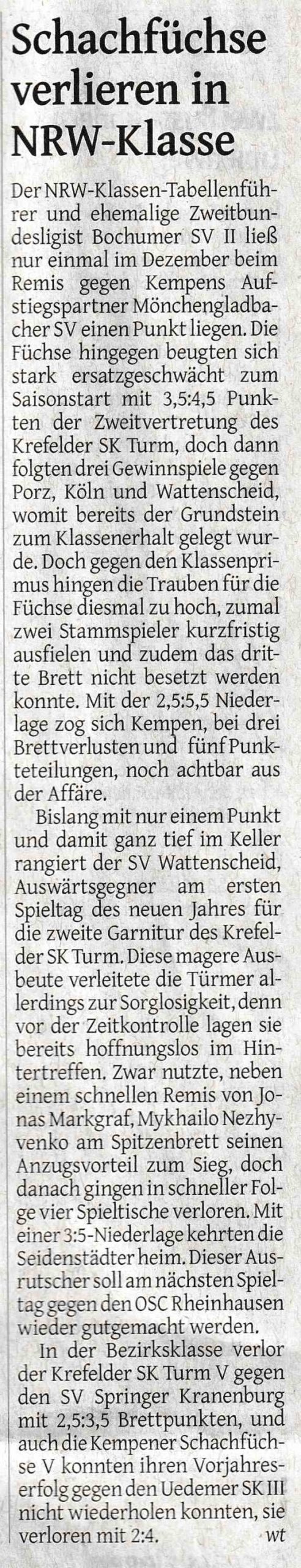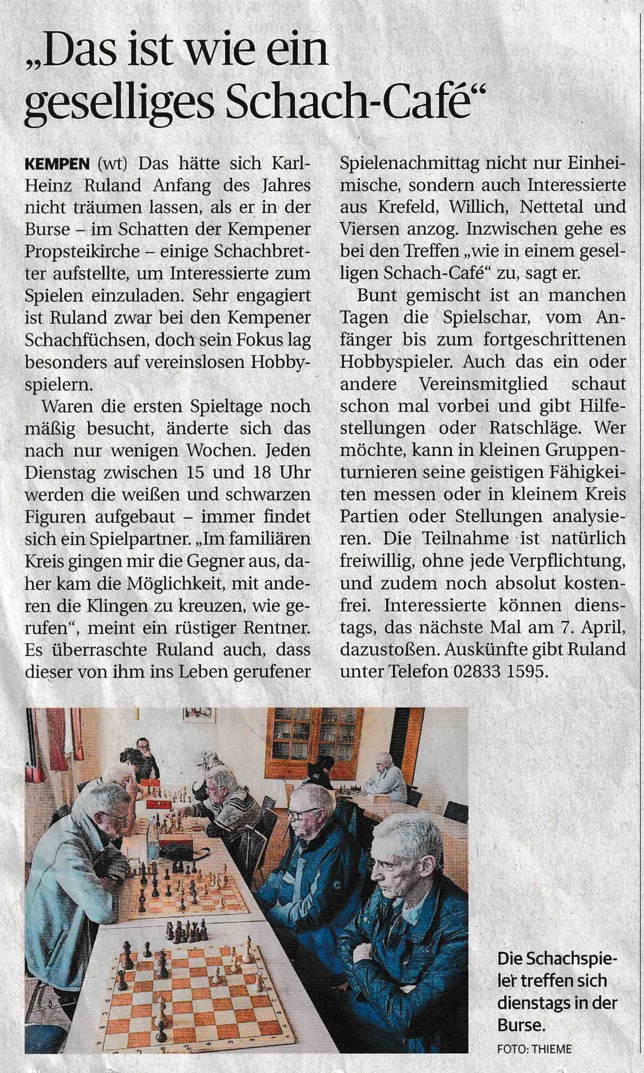 | 20.12.2024 | Schachfüchse Kempen verlieren ein enges Duell